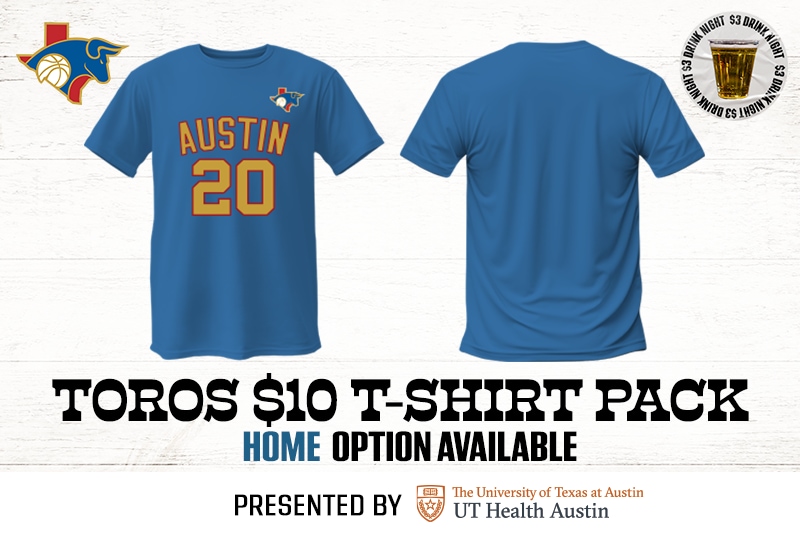 Step back in time as we celebrate the Austin Spurs 20th Anniversary with a special Toros Throwback Night! The team will honor its roots donning the classic blue, yellow and red Toros jerseys. Fans can also score a $10 Toros T-Shirt Add-on (Home version) to rep the classics in style.